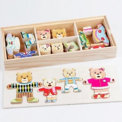 DressWood™ - Jouet Planche en bois d'habillage d'ours | Jeux enfants